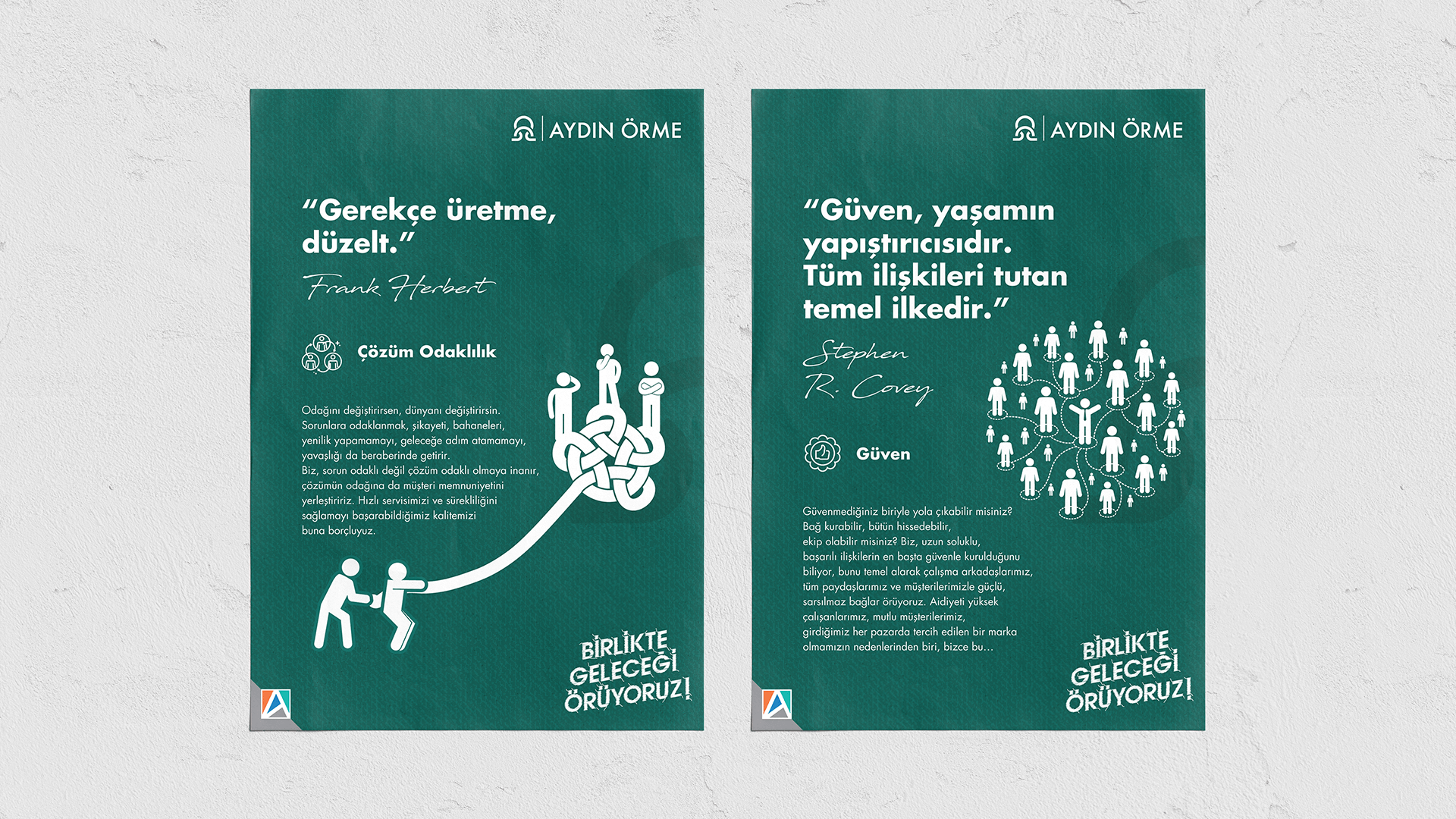 Aydın Örme için hazırladığımız iç iletişim ve değerler kampanyası. Amaç büyüyen firmada yeni veya eski her bir çalışanın değerleri iyi bir şekilde öğrenip benimsemesiydi.